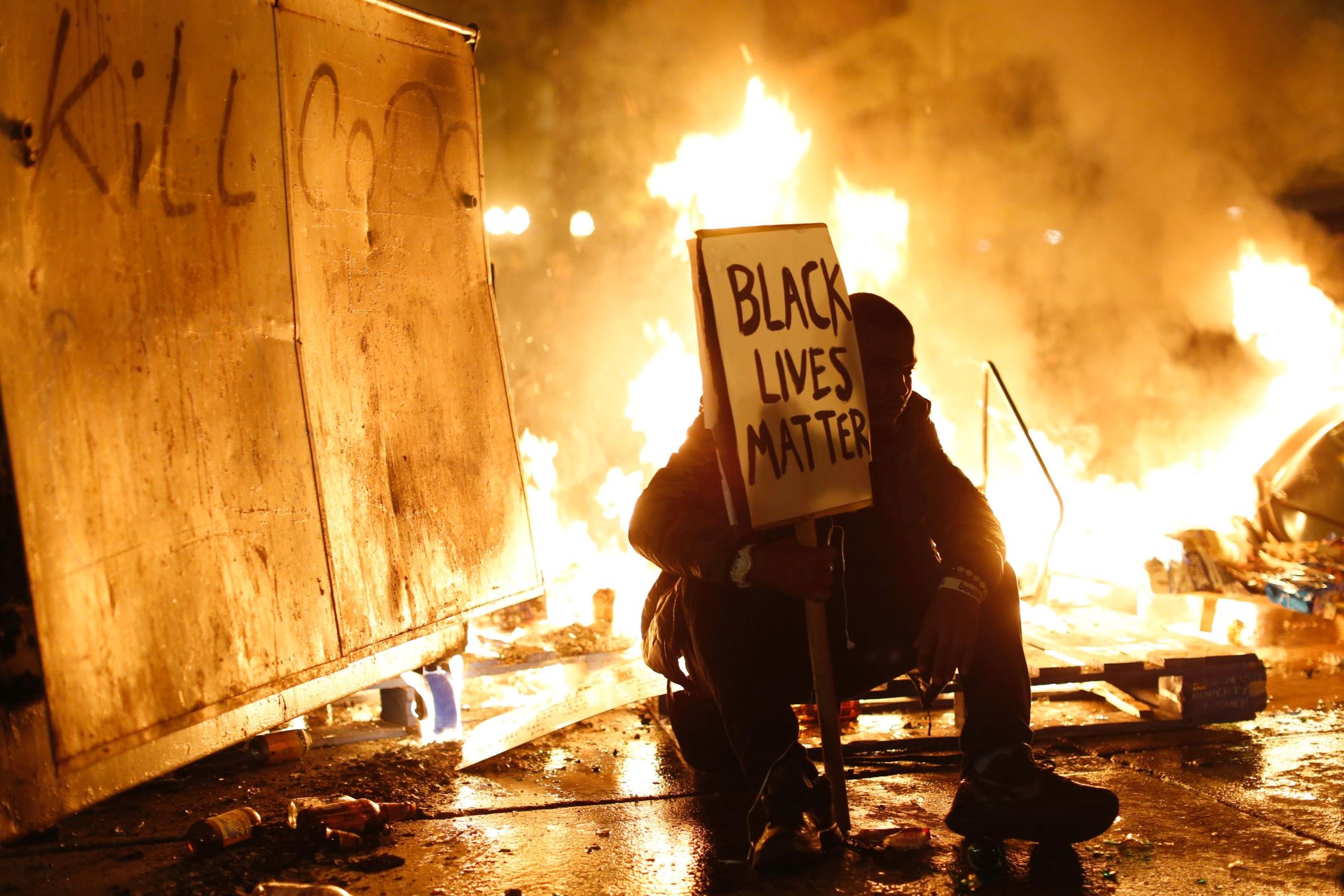 Lorsque Michael Brown, un adolescent noir et non armé, se fait tirer dessus par un policier blanc à Ferguson, dans le Missouri, les tensions raciales s’enflamment dans tout le pays, provoquant des manifestations violentes et des émeutes. Le 24 novembre, la décision du Grand Jury de ne pas presser de charges contre l’officier de police envenime encore la situation, et les émeutes s’étendent dans 170 villes américaines.