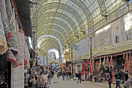 La Rue des Consuls est le souk artisanal de la ville de Rabat et donne sur la Kasbah des Oudayas. Quoique n'ayant pas l'opulence et la taille de celui de Marrakech ou les échoppes-galeries d'art de la médina d'Essaouira, le souk de Rabat reste néanmoins une promenade très agréable dans la capitale. La rue des Consuls est la rue principale de celui-ci, et s'étend sur plus d'un kilomètre. Elle a été rénovée il y a quelques années, abritée et décorée de manière artisanale. C'est désormais un lieu propre, clair, espacé et nettement moins fréquenté que les ruelles tortueuses de Marrakech: vous ne risquez pas de vous y perdre ! La Médina de Rabat a été fondée au XVIIème siècle par les Moriscos, les Andalous chassés d'Espagne par Philippe III. Elle prend son nom du fait que les diplomates étrangers étaient tenus d'y résider. La raison en est que les captifs des pirates et corsaires de Salé étaient revendus à proximité, à Souk El Ghazal. D'après un traité signé avec le Sultan, les diplomates avaient le droit de racheter ces captifs et on les maintenait donc à côté de la "zone de négociation". Louis Chénier, père du poète André Chénier y fut quelques années représentant du Roi de France. Il négociait avec une telle virtuosité le rachat des captifs français qu'il aurait provoqué l'ire du Sultan, qui aurait alors exigé son renvoi en France ! Tout l'artisanat Marocain est disponible Rue des Consuls. Vous y trouverez tapis, poteries, objets en bois ou en pierre venus de tous les coins du Maroc, mais également de nombreux bijoutiers dont la spécialité est l'argent. Fouillez un peu et vous découvrirez de très belles pièces uniques et/ou anciennes. Bien évidemment, n'hésitez pas à marchander. Pour un bijou en argent classique, le prix du gramme ne doit pas dépasser 15DH (1.4EUR) Si vous en avez le temps, promenez-vous dans les petites rues parallèles. Vous pourrez tomber sur un foundouk, ces hôtels pour caravansérails où les chevaux et les dromadaires logent au rez-de-chaussée et les hommes à l'étage, sur des fontaines oubliées, ou sur de s artisans au travail. Arrêtez-vous également à l'échoppe du nougatier et goûtez un des morceaux qu'il vous proposera. C'est délicieux, et sans danger, de mémoire de rbati ! Bonne balade, rue des Consuls !